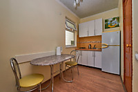 Номер 3-х местный (2 взр+1 реб), общей площадью 18 кв.м., кровать 1,60 х2,00 м, диванчик раздвижной, кухня оборудована необходимыми принадлежностями, кондиционер, тв, холодильник.